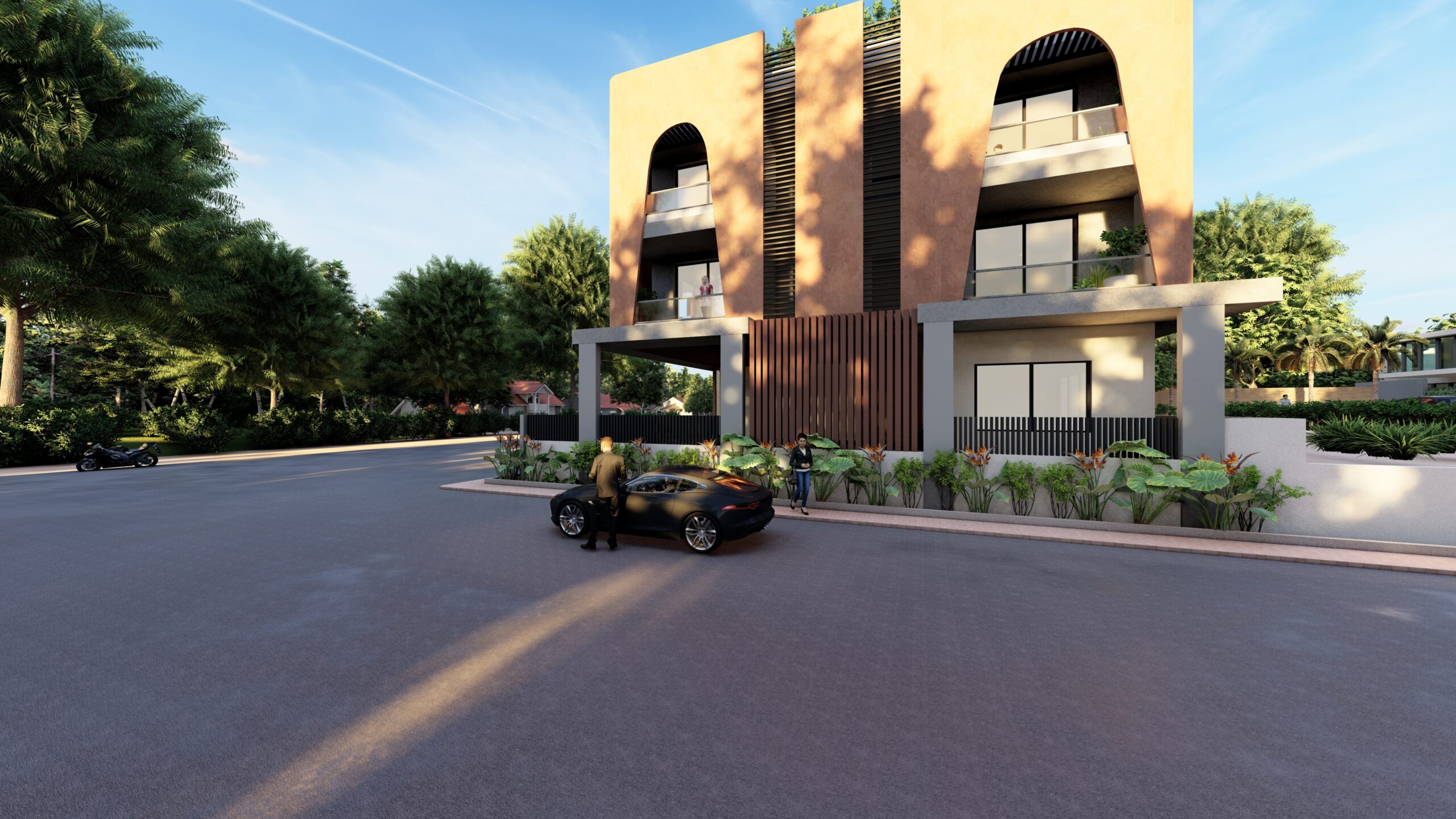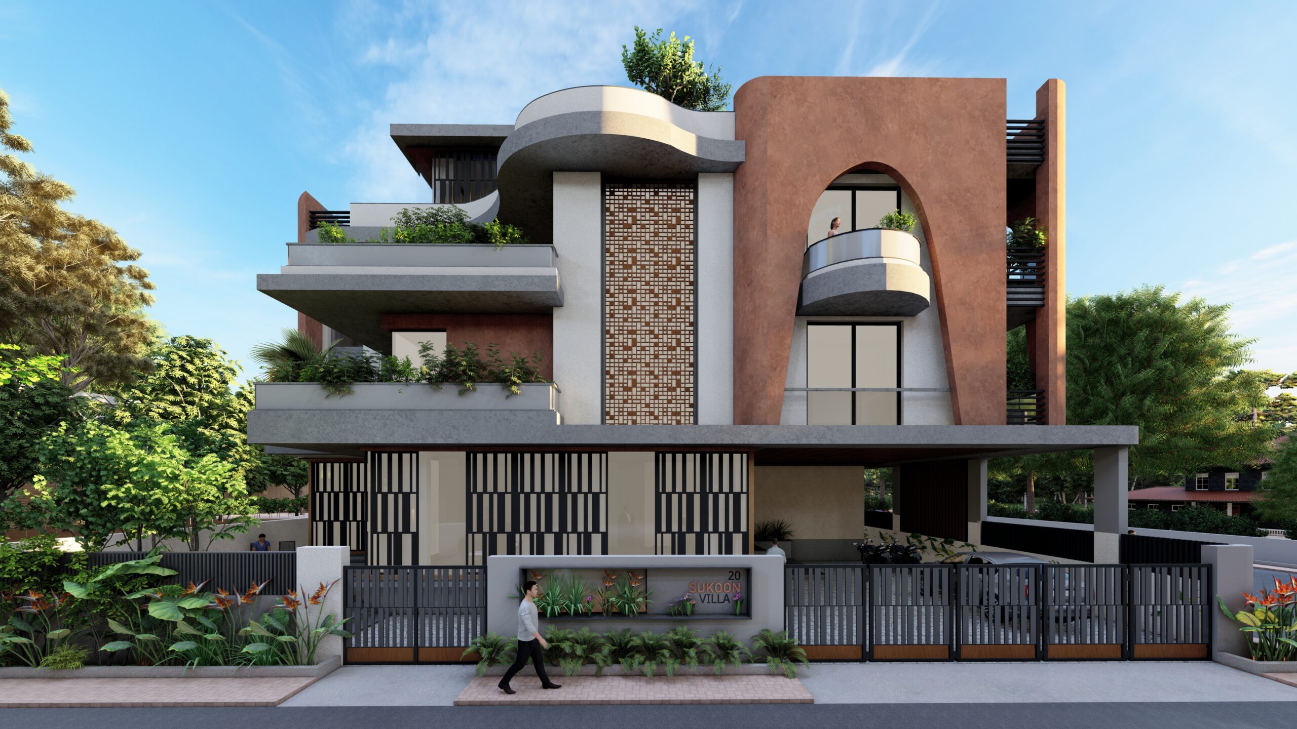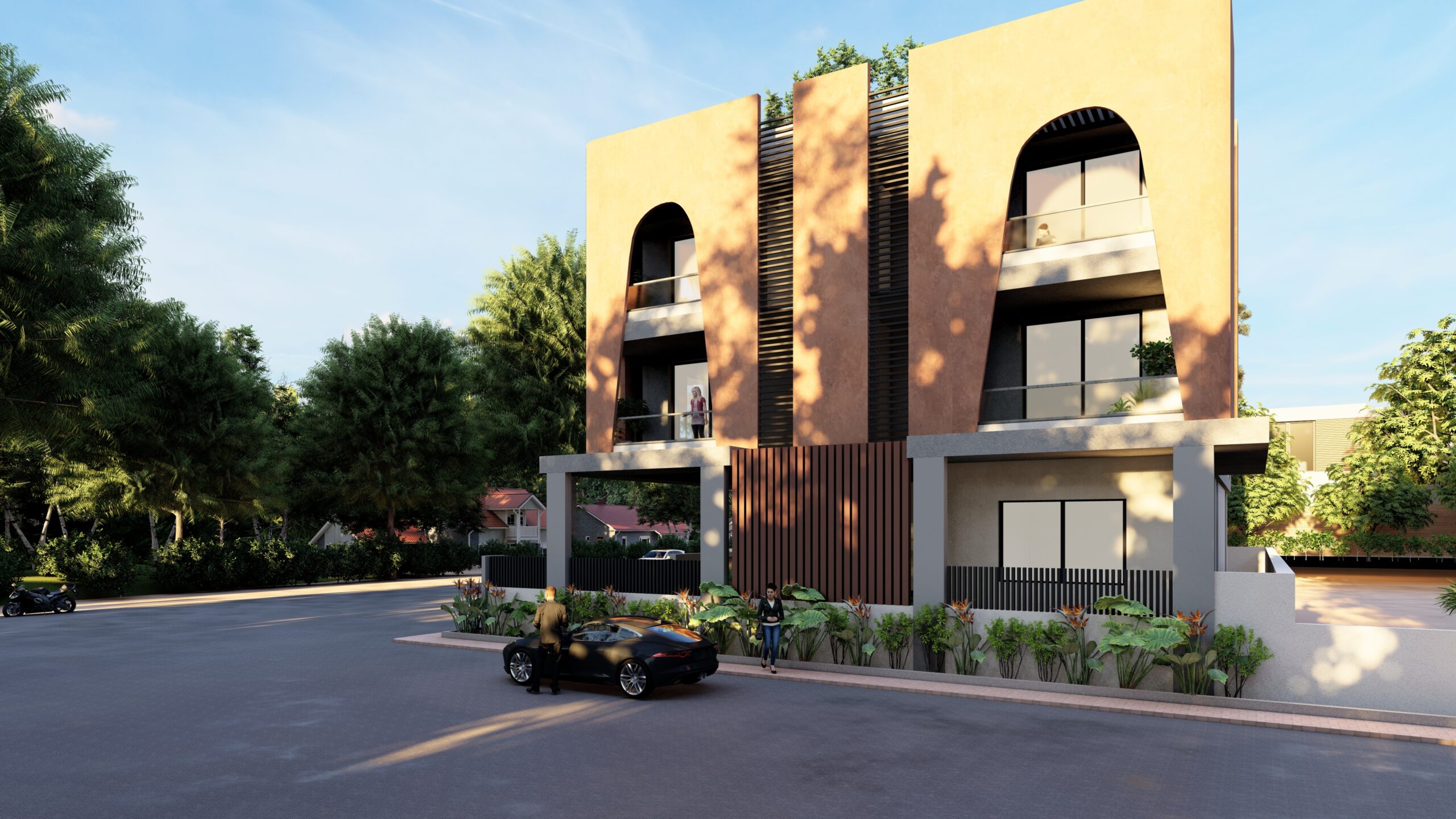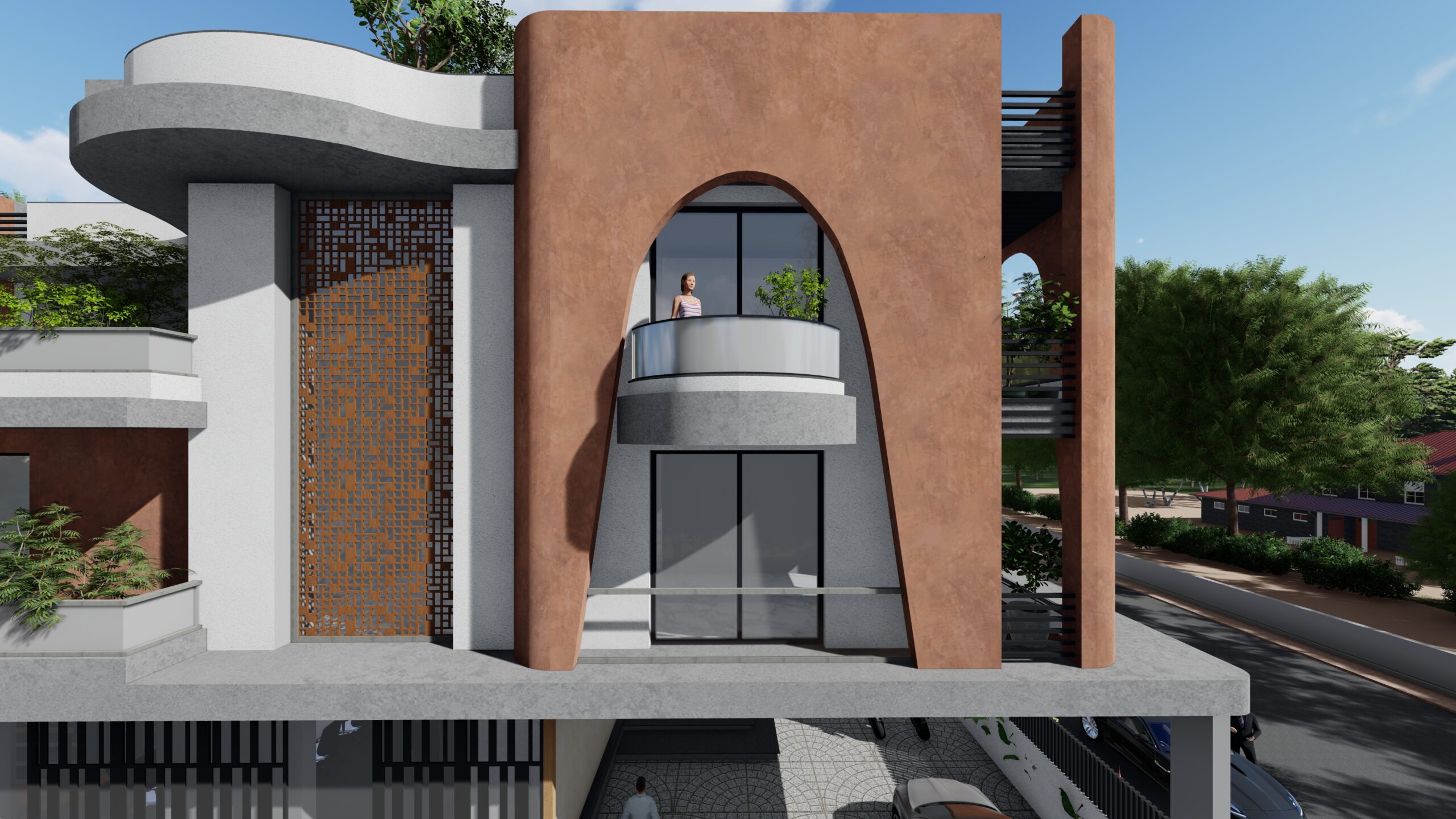 This iconic private residence is a bold architectural statement—an elegant fusion of classical form and contemporary sensibility. At its heart are a series of large, sculptural arches, which define both the visual identity and spatial experience of the home. The arches serve as structural elements, spatial dividers, and symbolic forms, imbuing the house with a timeless, monumental character. The design is intended to celebrate grandeur, rhythm, and light, while still providing intimate, functional spaces for daily life.