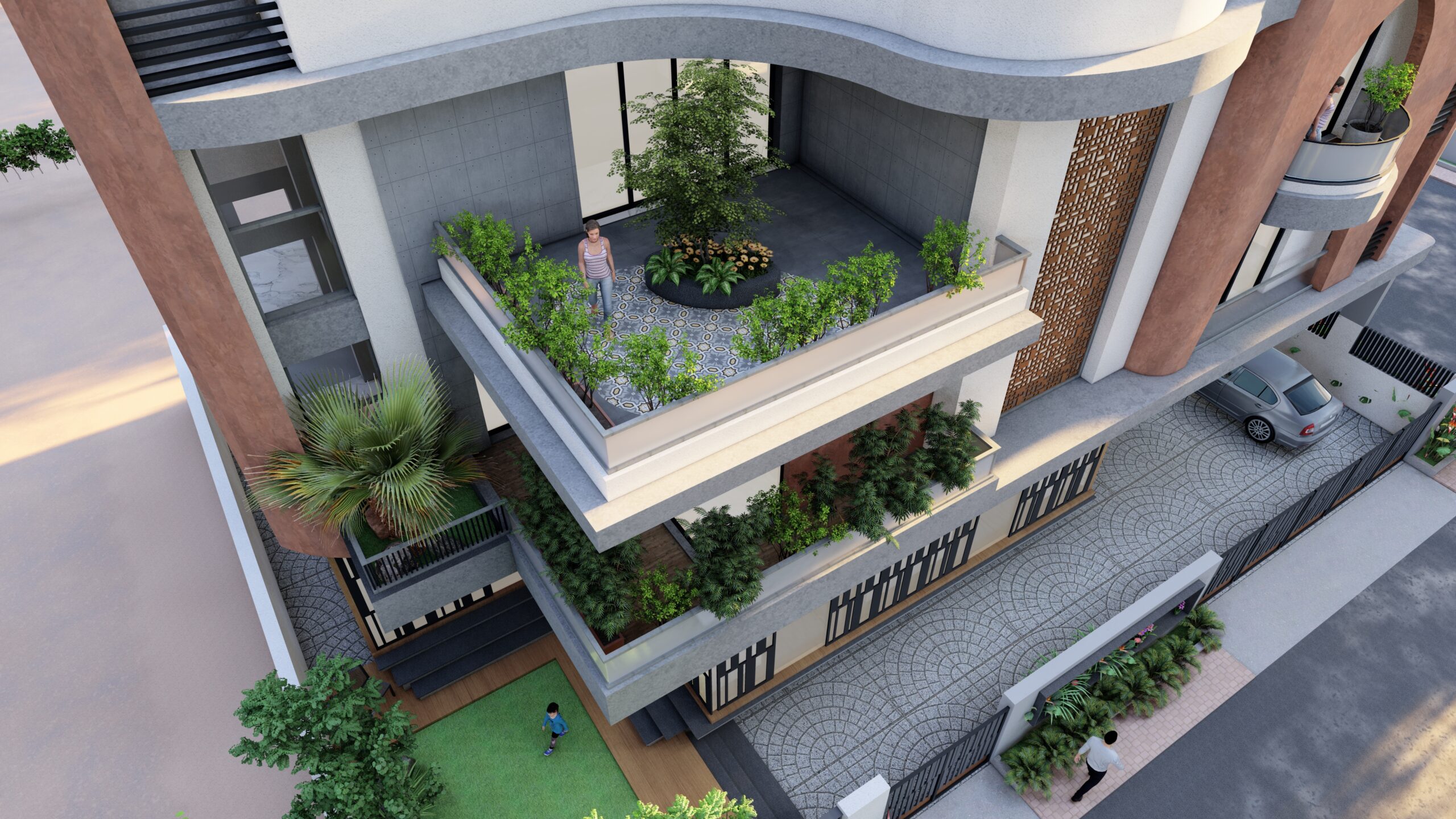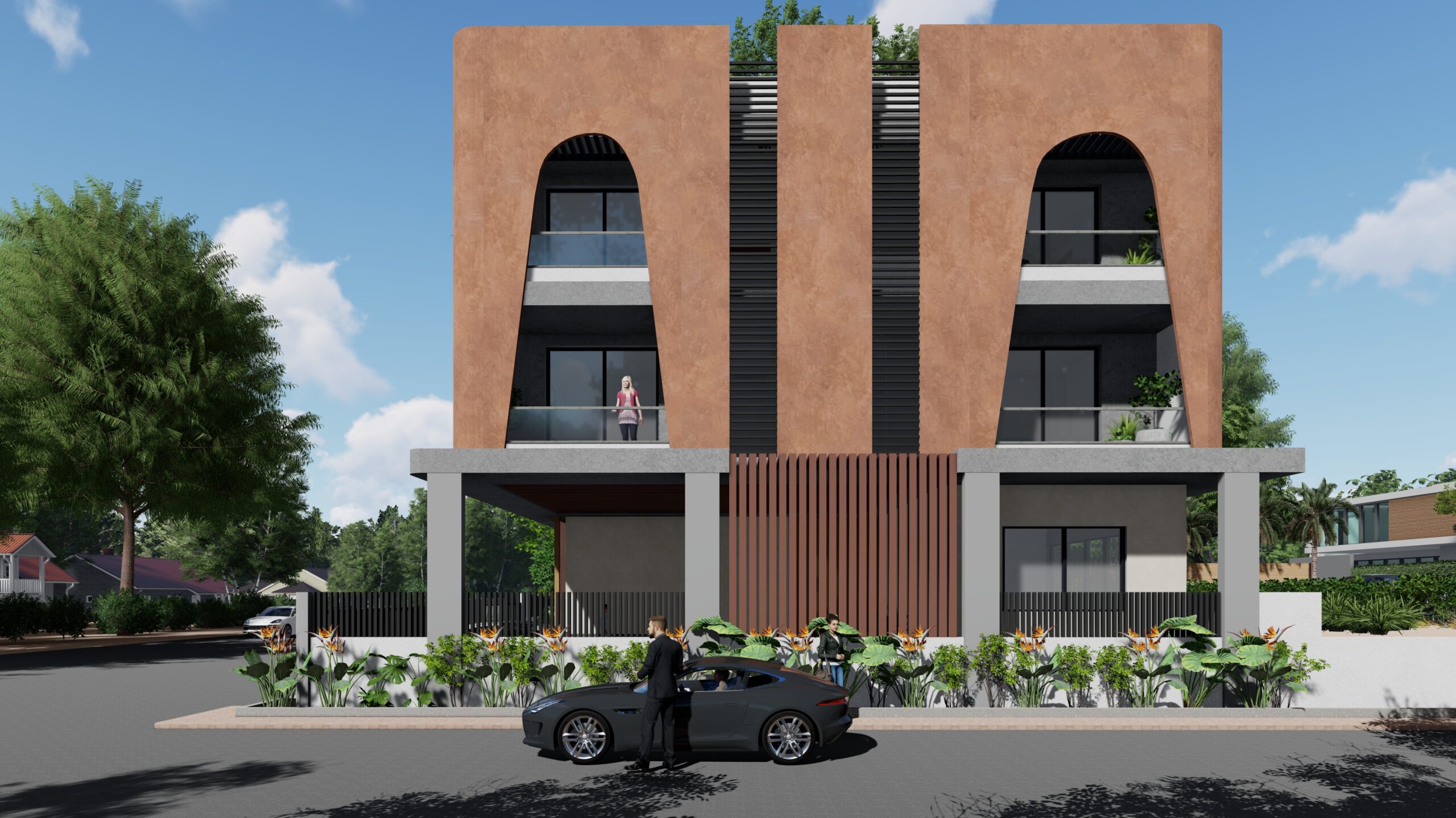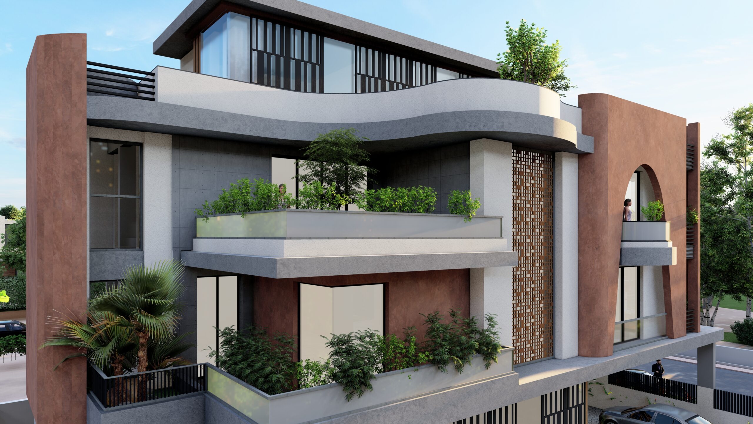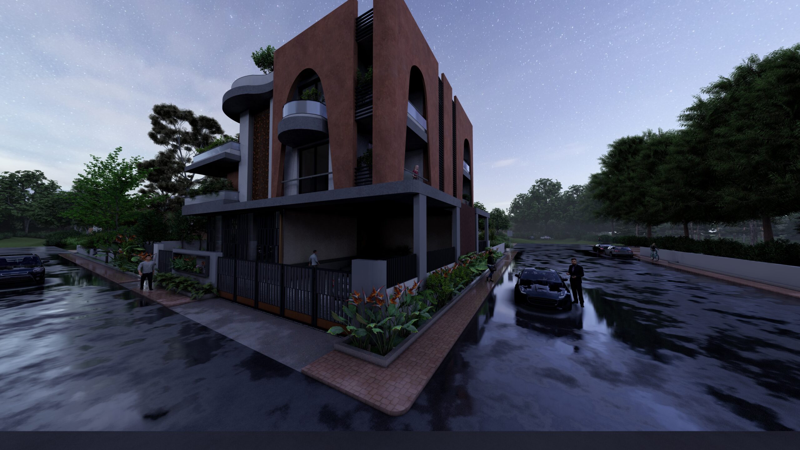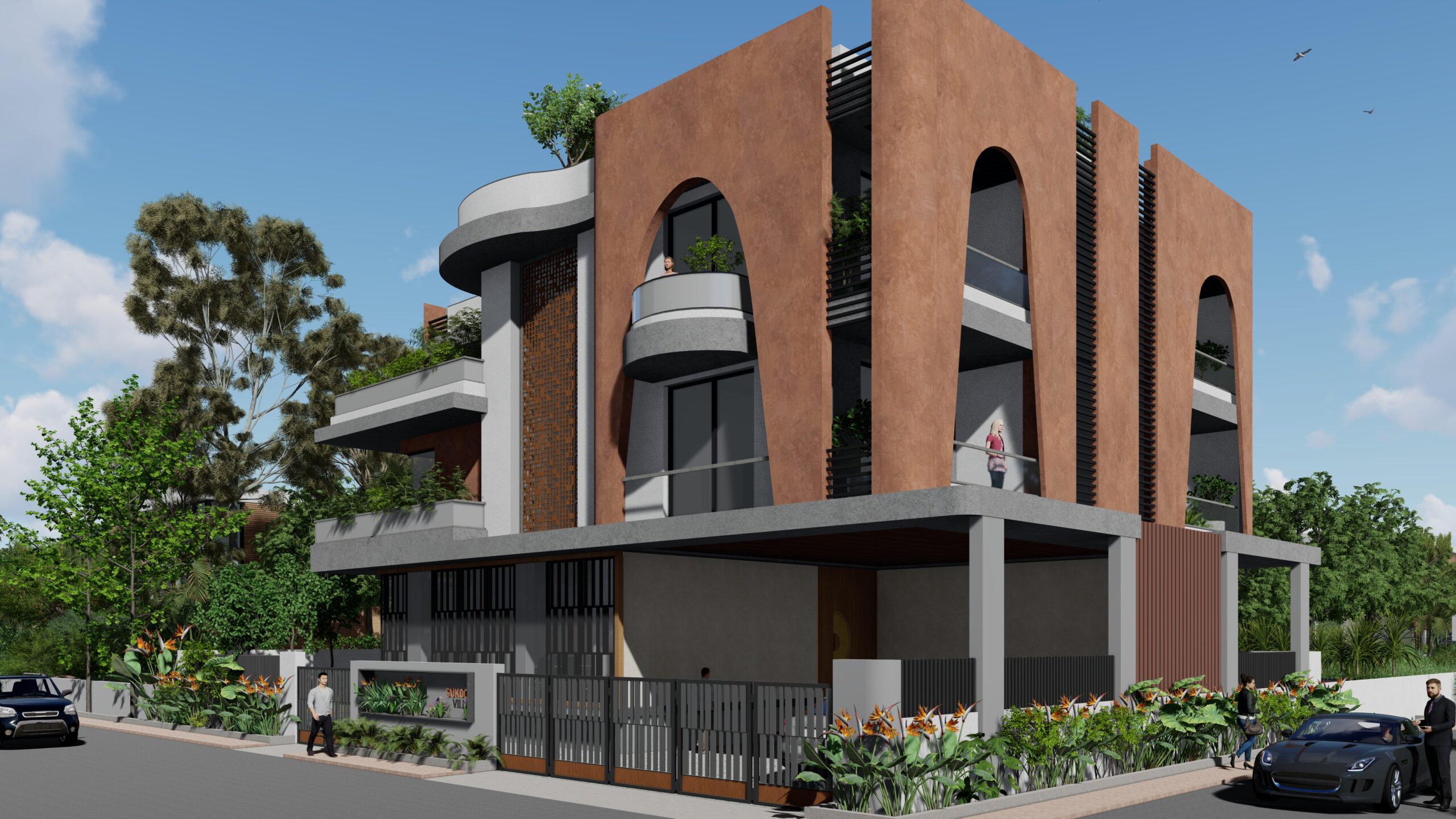 This iconic private residence is a bold architectural statement—an elegant fusion of classical form and contemporary sensibility. At its heart are a series of large, sculptural arches, which define both the visual identity and spatial experience of the home. The arches serve as structural elements, spatial dividers, and symbolic forms, imbuing the house with a timeless, monumental character. The design is intended to celebrate grandeur, rhythm, and light, while still providing intimate, functional spaces for daily life.