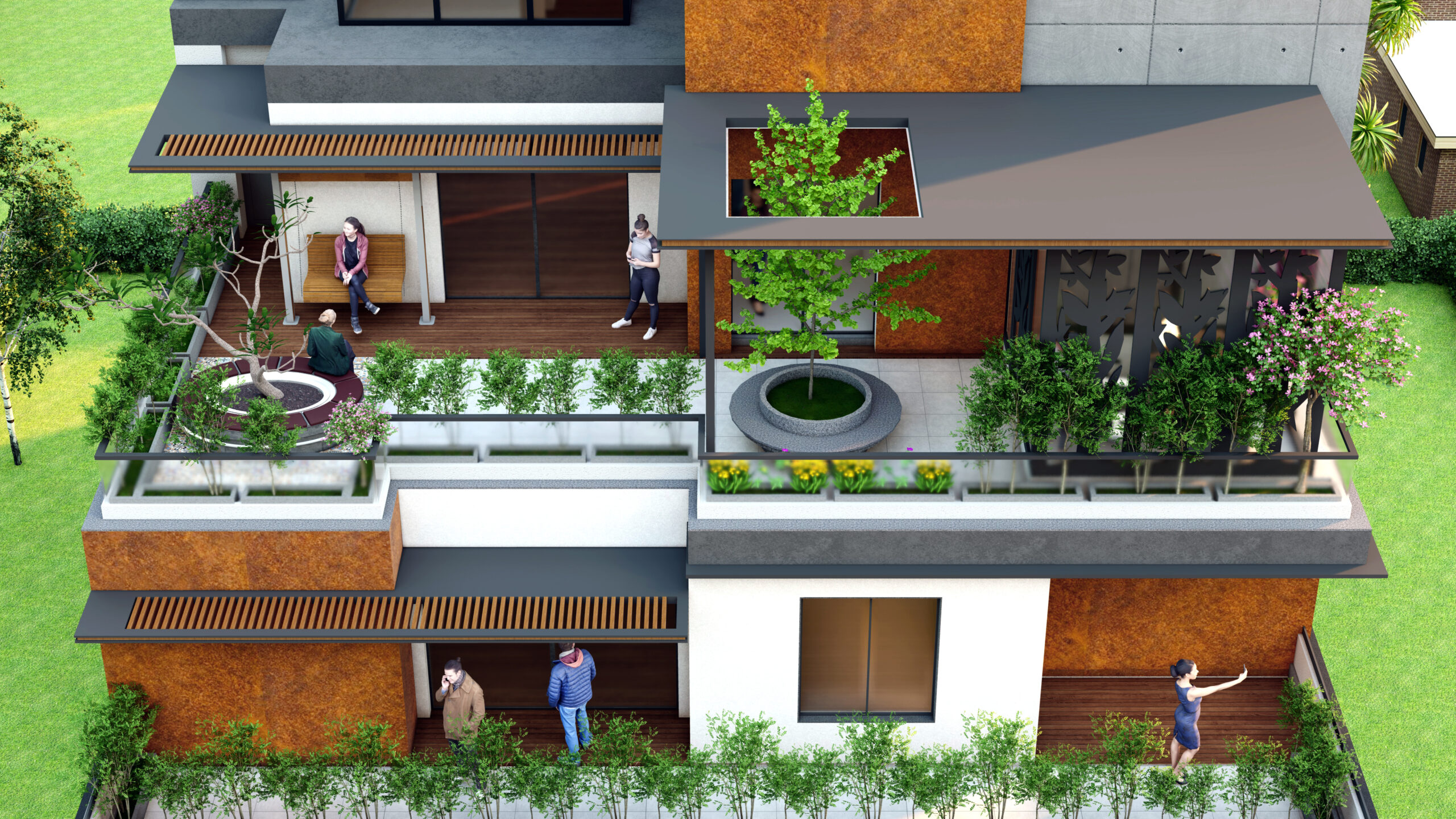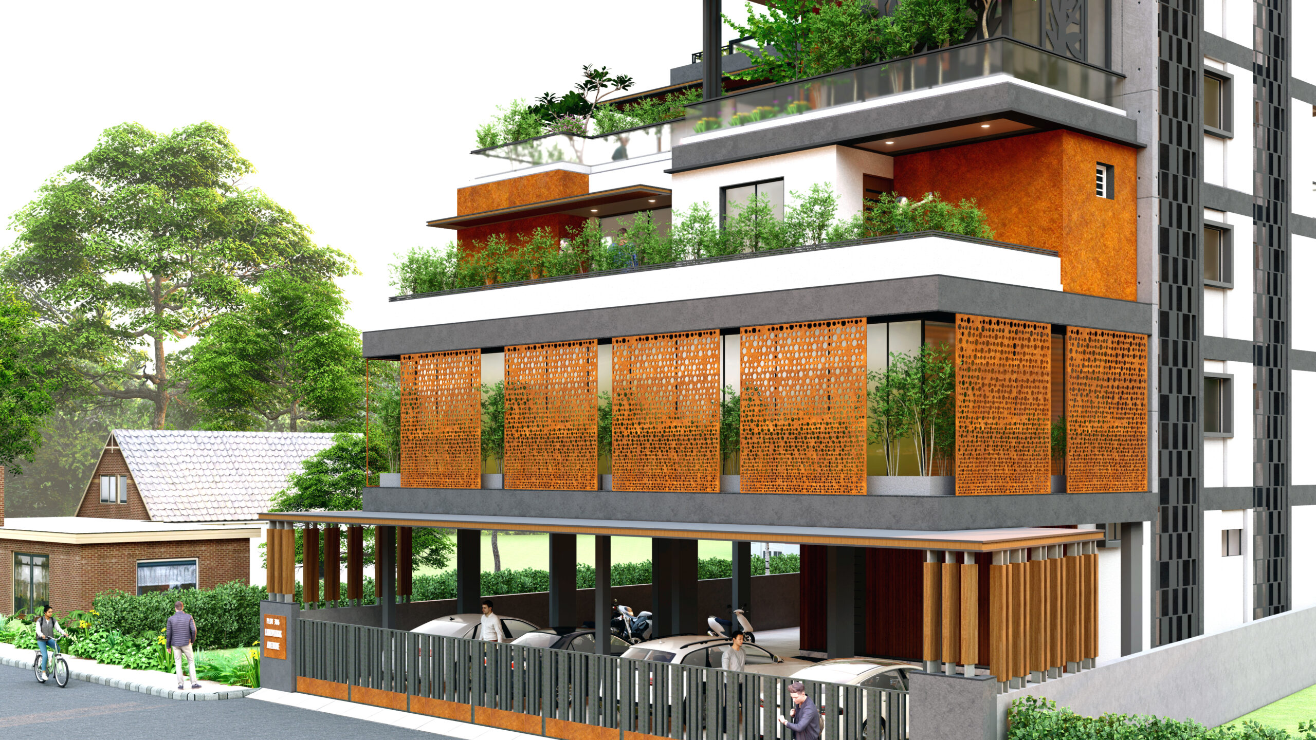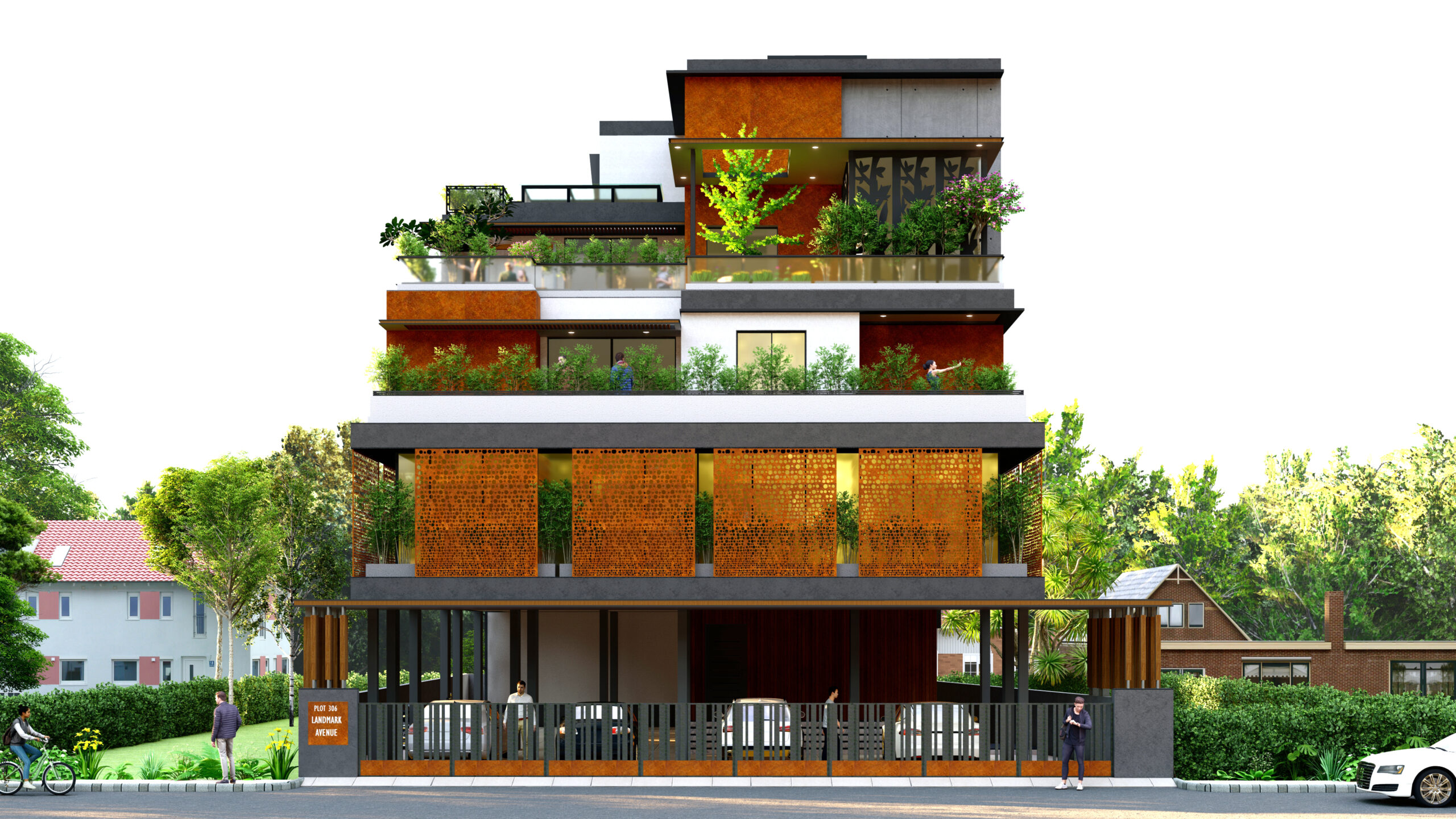 This mixed-use building is a thoughtfully designed urban structure that integrates commercial and residential functions while incorporating a distinctive step terrace concept. The building is envisioned as a dynamic, multi-layered form that not only serves practical needs—such as housing and retail—but also enhances the environment through green terraces, improved airflow, and visual openness. The stepped massing breaks down the building’s scale, creating a dialogue between built form and landscape.
