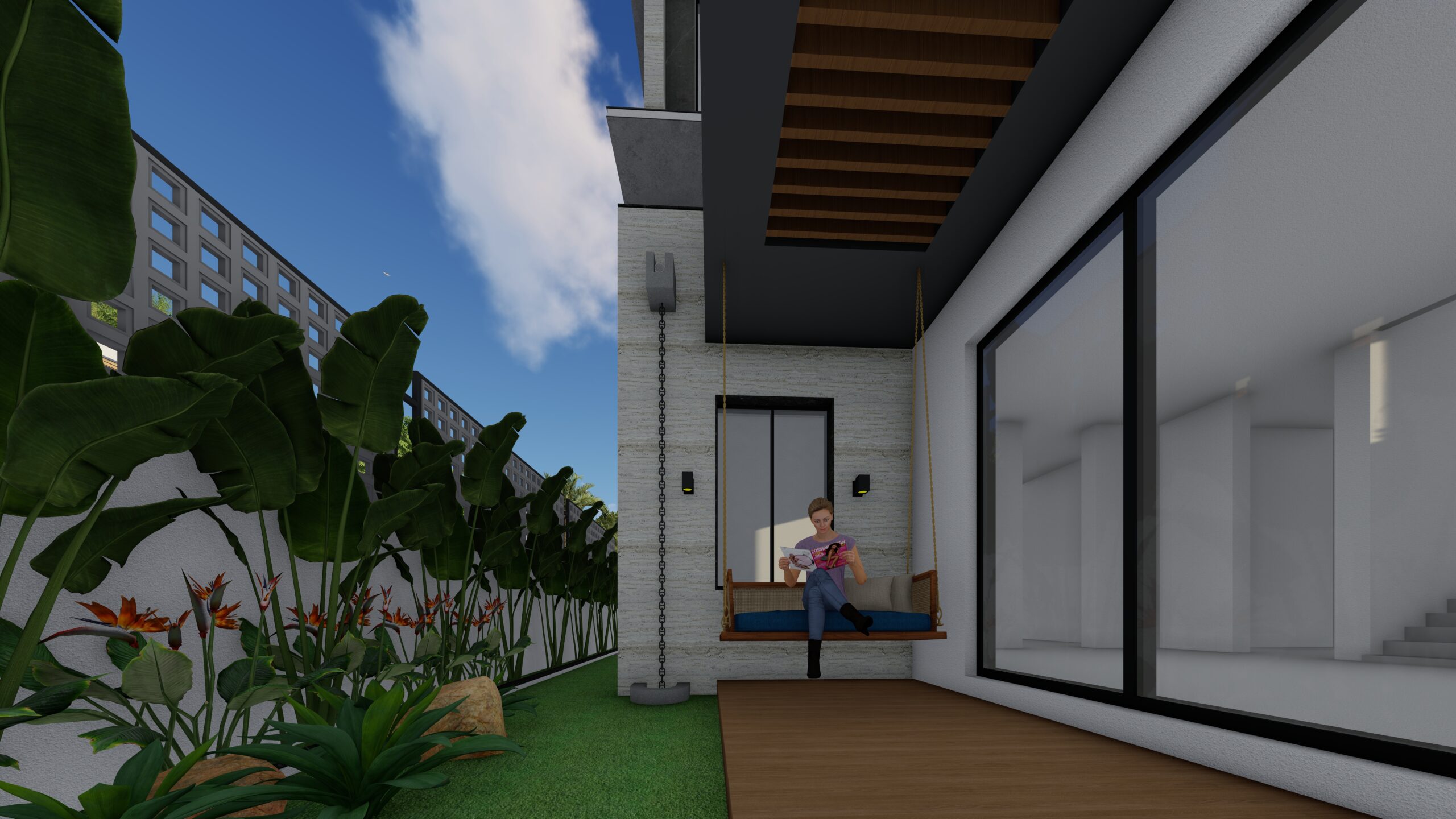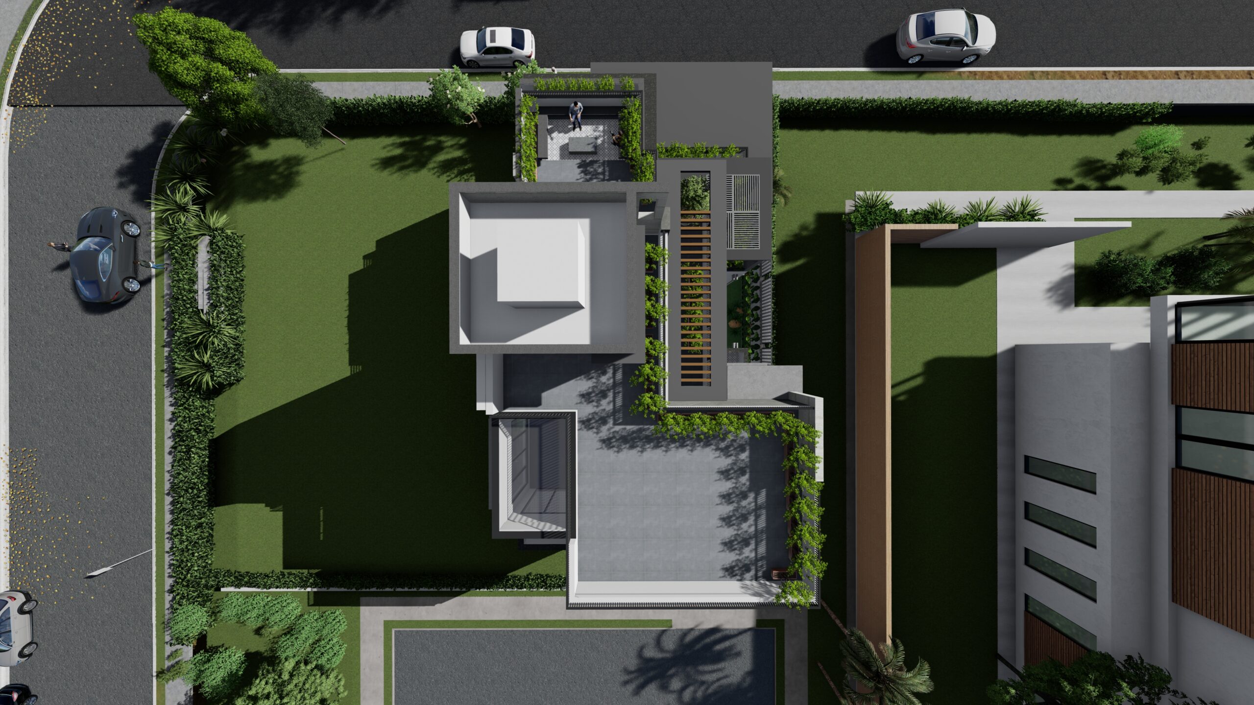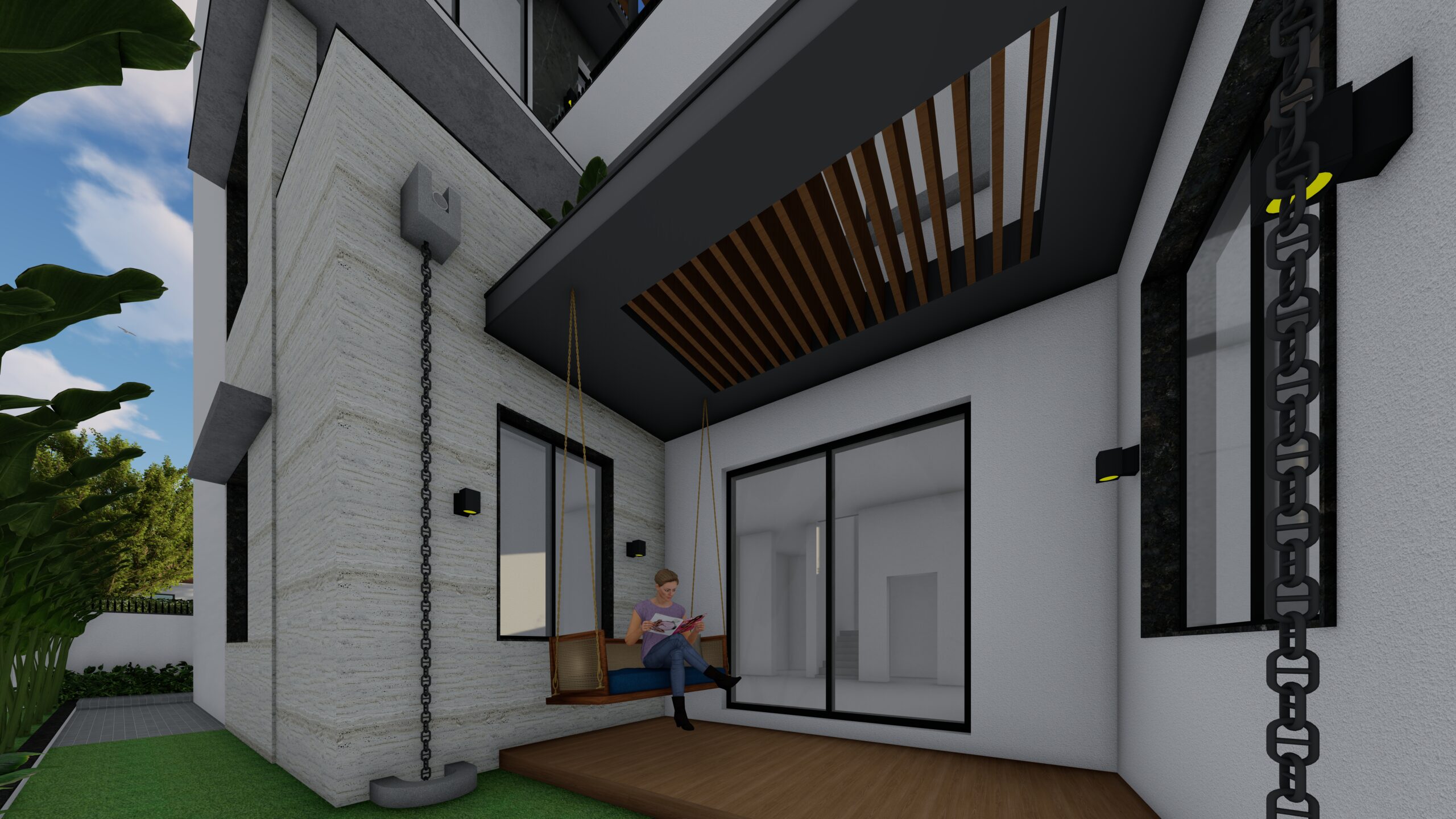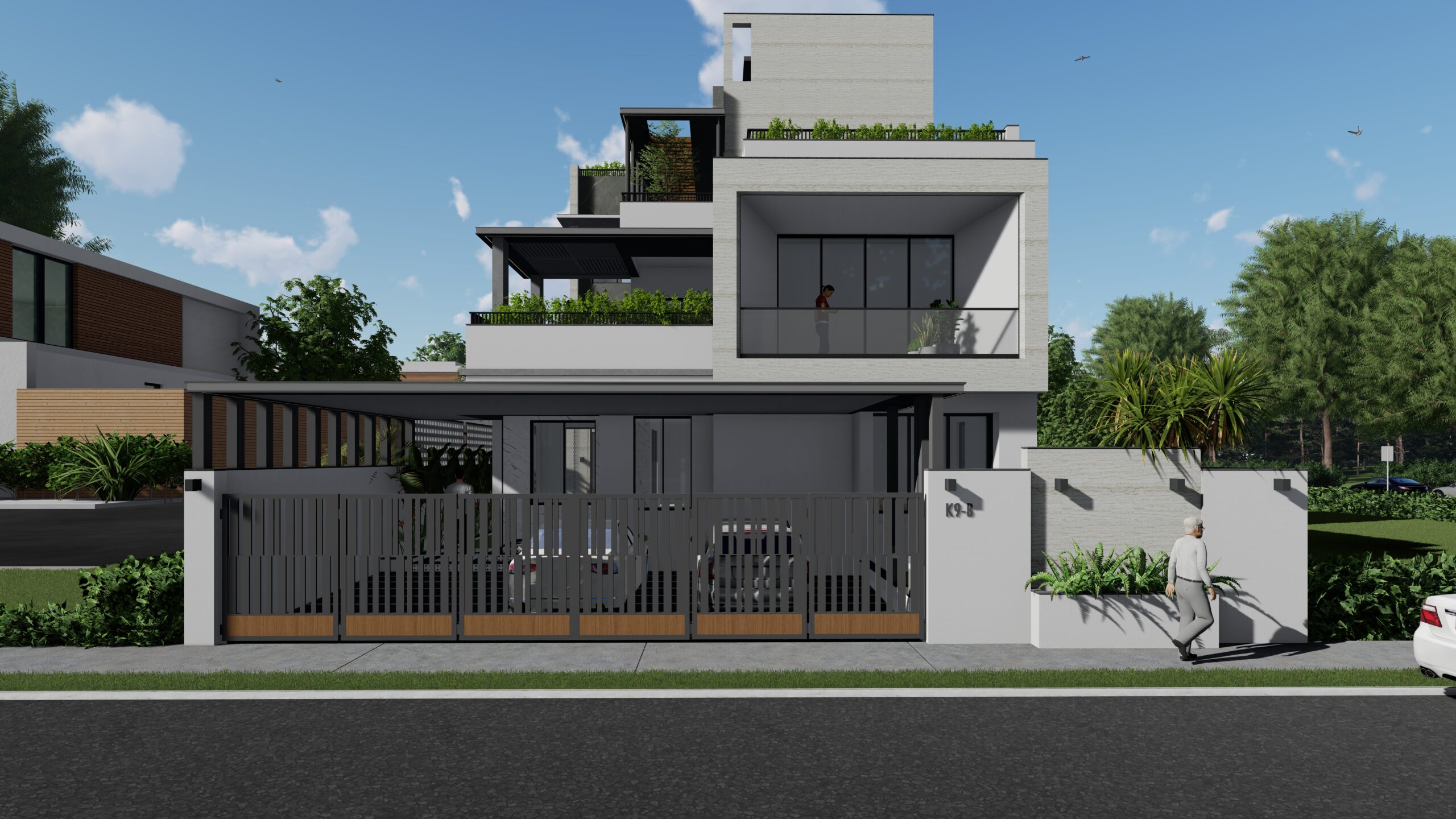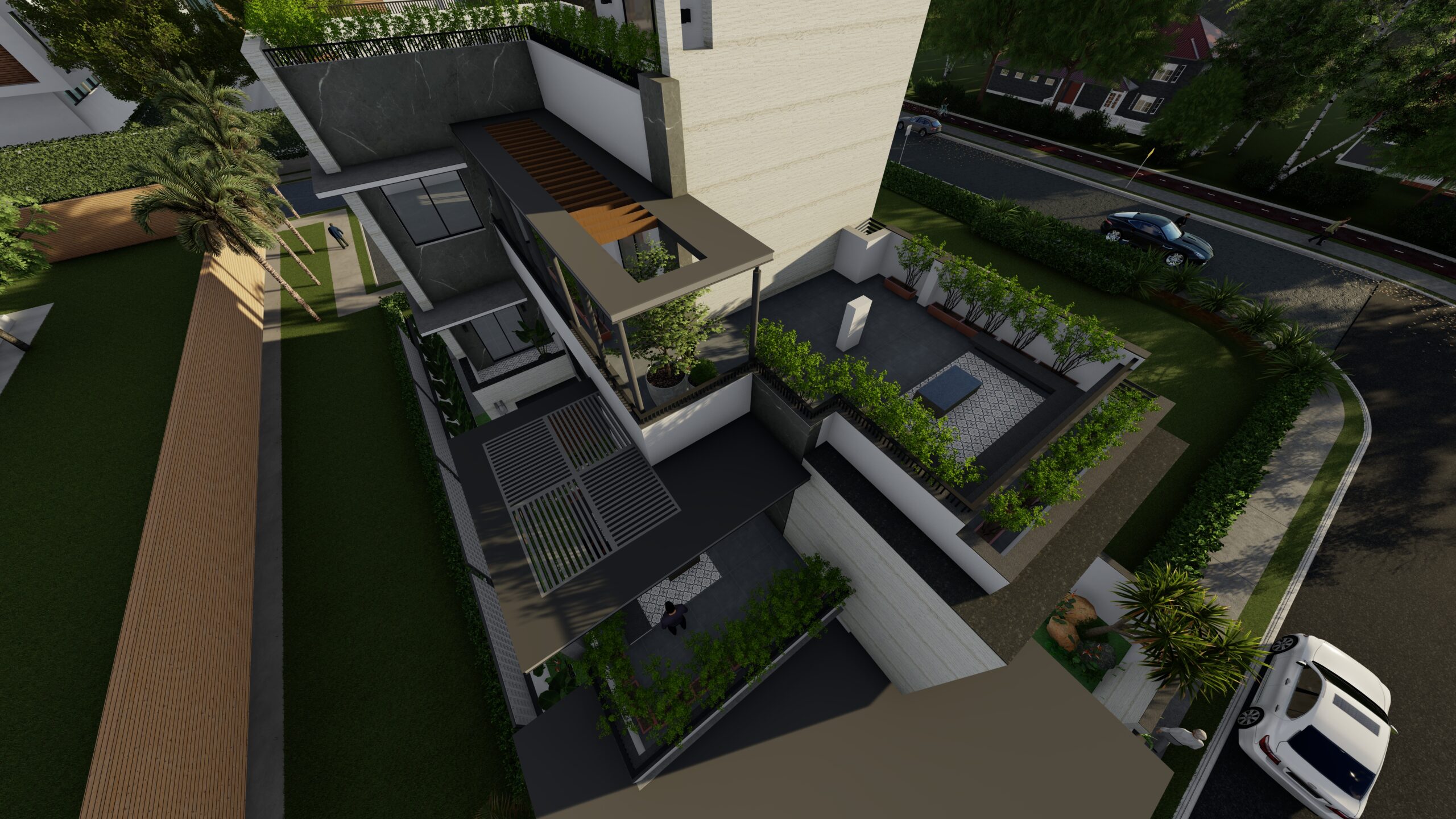 This modern white residence is a refined expression of contemporary living, defined by clean lines, a minimalist aesthetic, and a sophisticated material palette. The architectural identity of the home is elevated through the use of premium Italian cladding, which adds texture, durability, and timeless elegance to the otherwise restrained white volume. The design is both aesthetic and functional, combining spatial clarity with material richness.