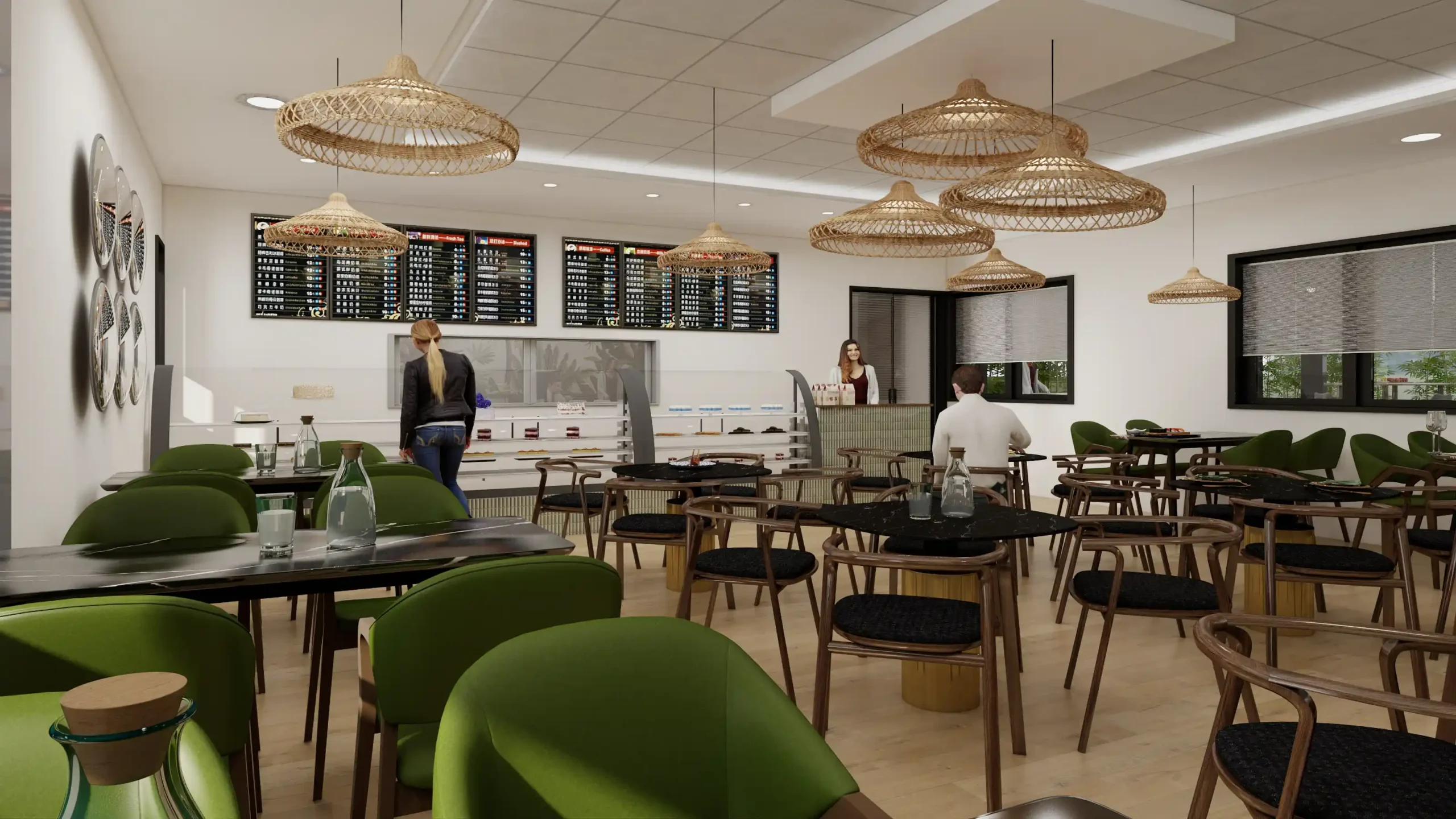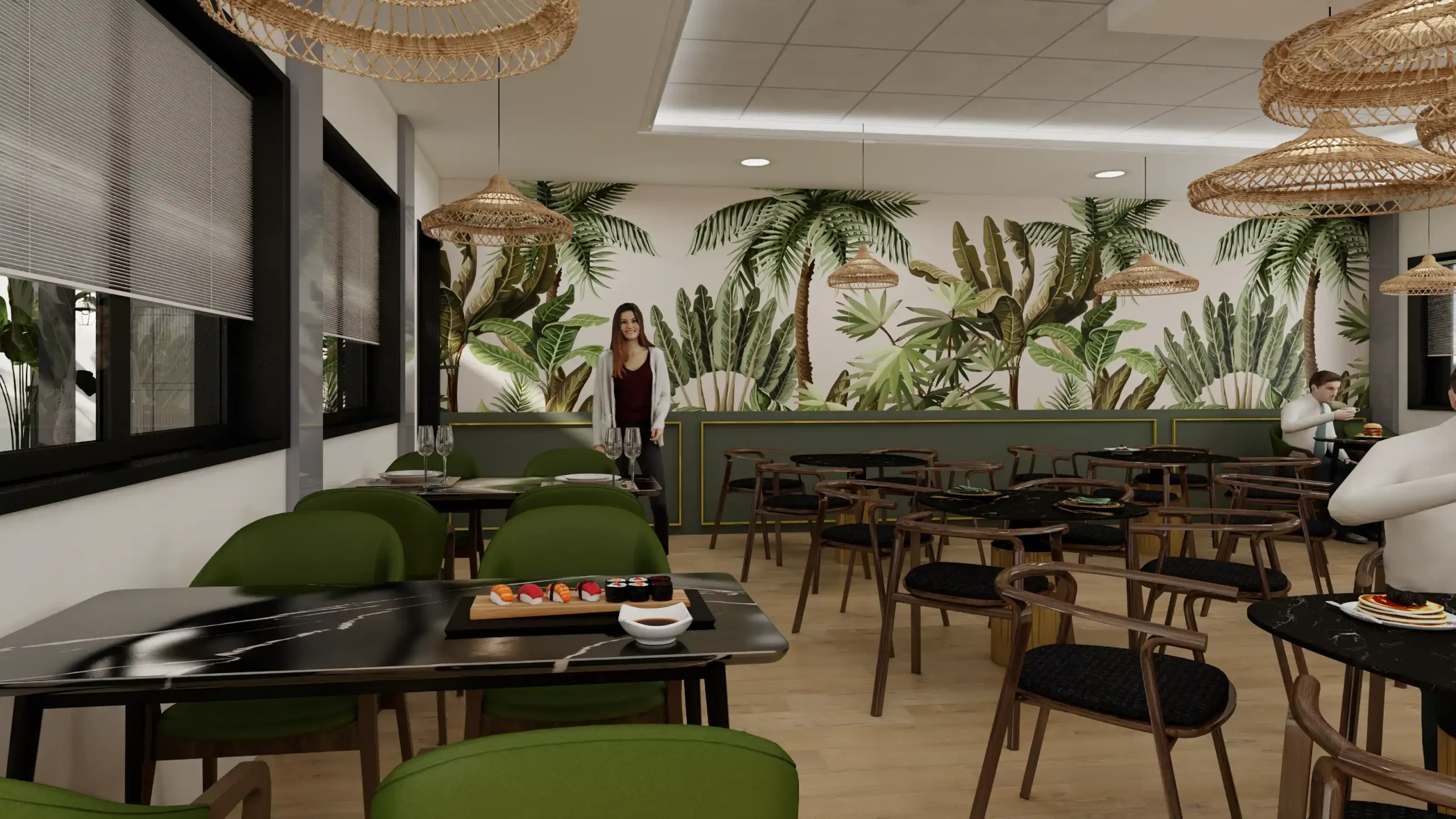 This minimalist tropical-themed restaurant offers a refreshing escape — a space where simplicity meets lush serenity. Inspired by the breezy charm of tropical landscapes and the clean lines of modern design, the interior evokes a calm, grounded atmosphere that encourages slow dining and sensory indulgence.