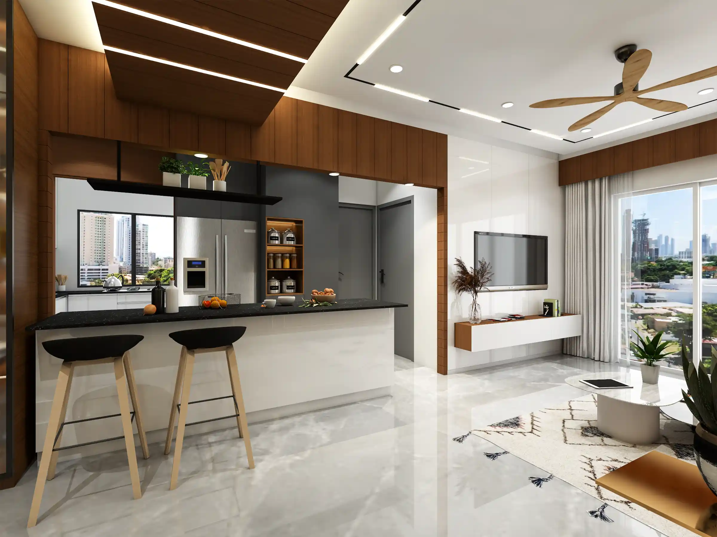 This modern 4-bedroom flat is a harmonious blend of functionality, sophistication, and understated elegance. Designed with a focus on contemporary urban living, the space balances clean architectural lines with warm, inviting materials to create a home that is both stylish and comfortable.
